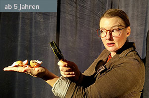 Ein Tisch, ein Hocker, eine Schauspielerin? Viel mehr braucht es nicht für die Darstellung des Märchens. Der fantasievolle "Rest" ist lebendiges Theater mit der Solospielerin Jana Sonnenberg.