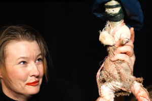 Der fantasievolle „Rest“ ist lebendiges Theater mit der Solospielerin Jana Sonnenberg. Sie ist Fischer und Frau, Butt und König, Kaiser und Erzählerin in Einem. Nur eine kleine Figur symbolisiert den Fischer. Wie das aussieht? Seht es euch an.